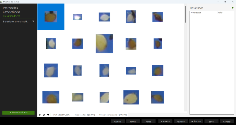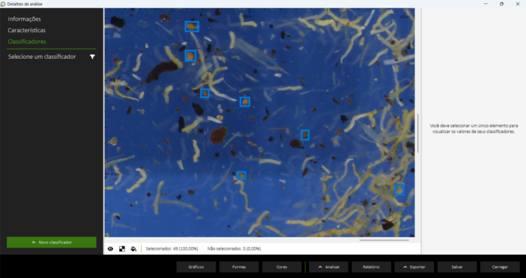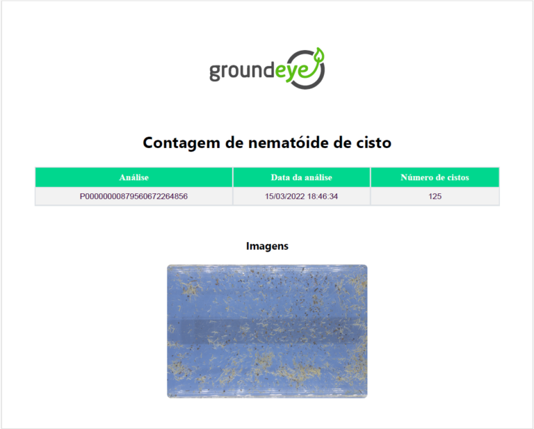 Após a análise, o resultado pode ser obtido através de uma planilha ou relatório. Ainda é possível analisar detalhes do resultado, observando a imagem isolada dos nematoides reconhecidos.